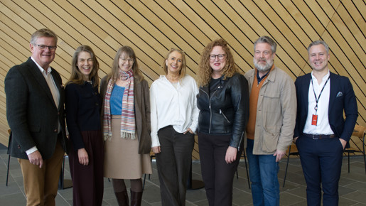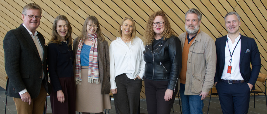 Harald Furre, administrerende direktør - Kilden teater og konserthus, Valborg Frøysnes, teatersjef Kilden Teater, Silje Riise Næss, direktør Talent Norge, Frøydis Emilie Lind, operasjef Kilden Opera, Kirsti Mathiesen Hjemdahl, daglig leder Stiftelsen Cultiva, Pål Svendsberget, direktør Kristiansand Symfoniorkester, Kristofer Hæstad, banksjef Sparebanken Norge. (Fotograf: Mikal Vassbotn)