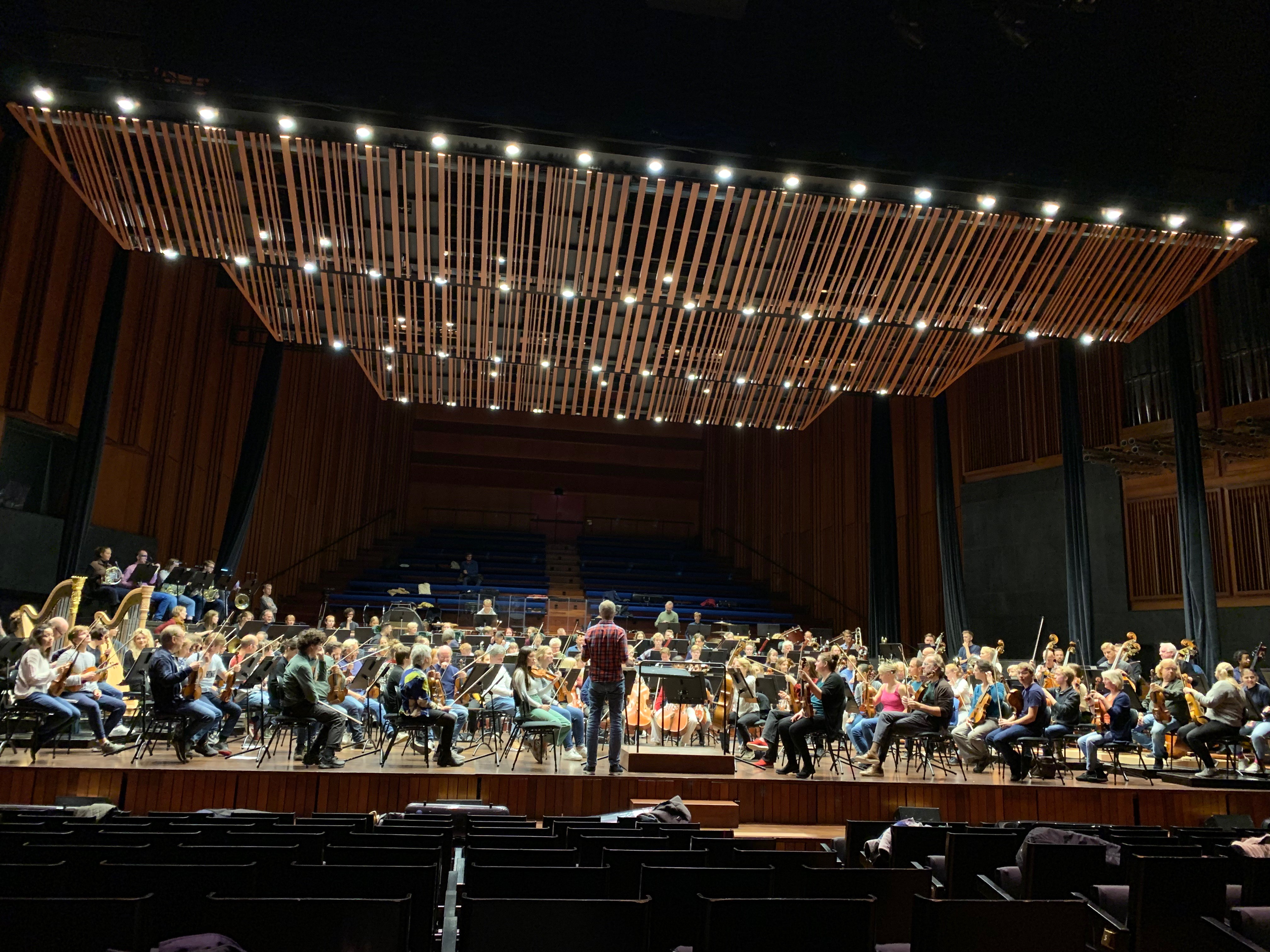 I kveld deler Ung Filharmoni podium med Oslo-Fillharmonien som til sammen utgjør et stort og spektakulært symfoniorkester hvor ung og profesjonell sitter side om side. Denne uken har talentene - pararellt med orkesterprøvene - overvært inspirerende foredrag og fått veiledning av en rekke erfarne musikere fra Oslo-filharmonien.