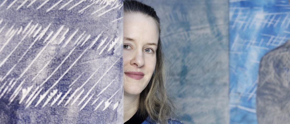 Her procedure is to cut out pictures in wood, which she then prints onto textile. The details are important so as to bring out tiny nuances of light and shadow, which create atmospheres and sentiments that are presented on flats that are as big as possible.