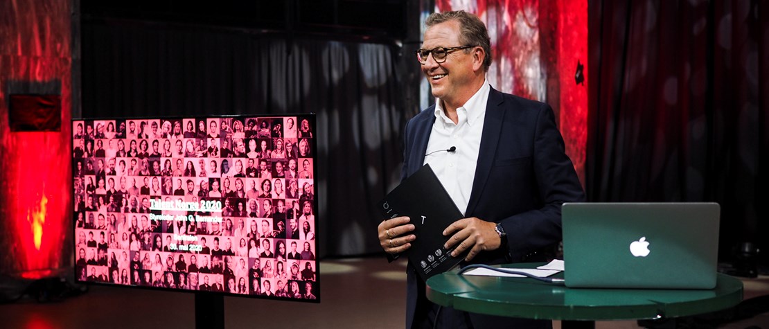 Hovedfoto: Avtroppende styreleder presenterte Talent Norges fantastiske resultater i helgas femårsjubileum. Se hele den storslåtte digitale festen på TN Arena!