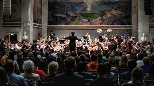16.05.2023 80 unge musikere fra hele landet fylte i slutten av juni Rønningen Folkehøyskole med den storslåtte musikken av Gustav Mahler. Sammen med dirigent Eivind Aadland og instruktører fra Oslo-Filharmonien har Ung Filharmoni gjennomført sin fjerde sommersamling i Oslo.