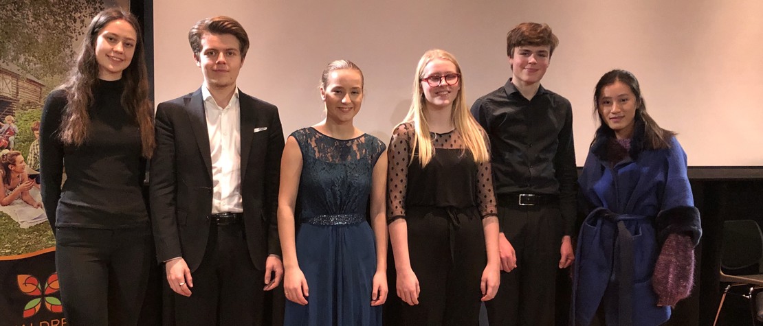 Gruppebilde f.v.: Maria Ose, Rasmus Hella Mikkelsen, Victoria Suzanne Lewis, Solveig Skogdal, Njord Kårason Fossnes, Katinka Nilsen