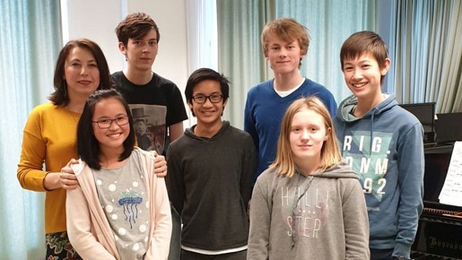 De 6 pianoelevene som var så heldige å få spille for Marina hadde forberedt hvert sitt pianostykke. Marina lyttet til elevene med stor begeistring.